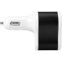 Autós töltő 2 USB csatlakozóval, alumínium szivargyújtóval. Bemenet 12V-24V, kimenet 5V-2100 mA. Műanyag.