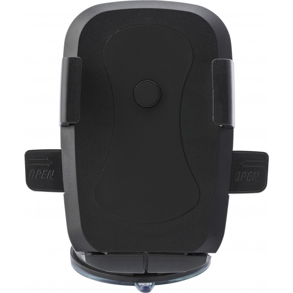 Állítható mobiltelefon-tartó, mely tapadókoronggal rögzíthető az autó szélvédőjére vagy műszerfalára. A telefon rögzítésére a két oldalsó kar szolgál, melyek max. 8,1 cm szélesre állíthatóak. A gomb megnyomásával a két befogó a legszűkebb állapotba áll vissza. Anyaga: ABS műanyag és gumi.
