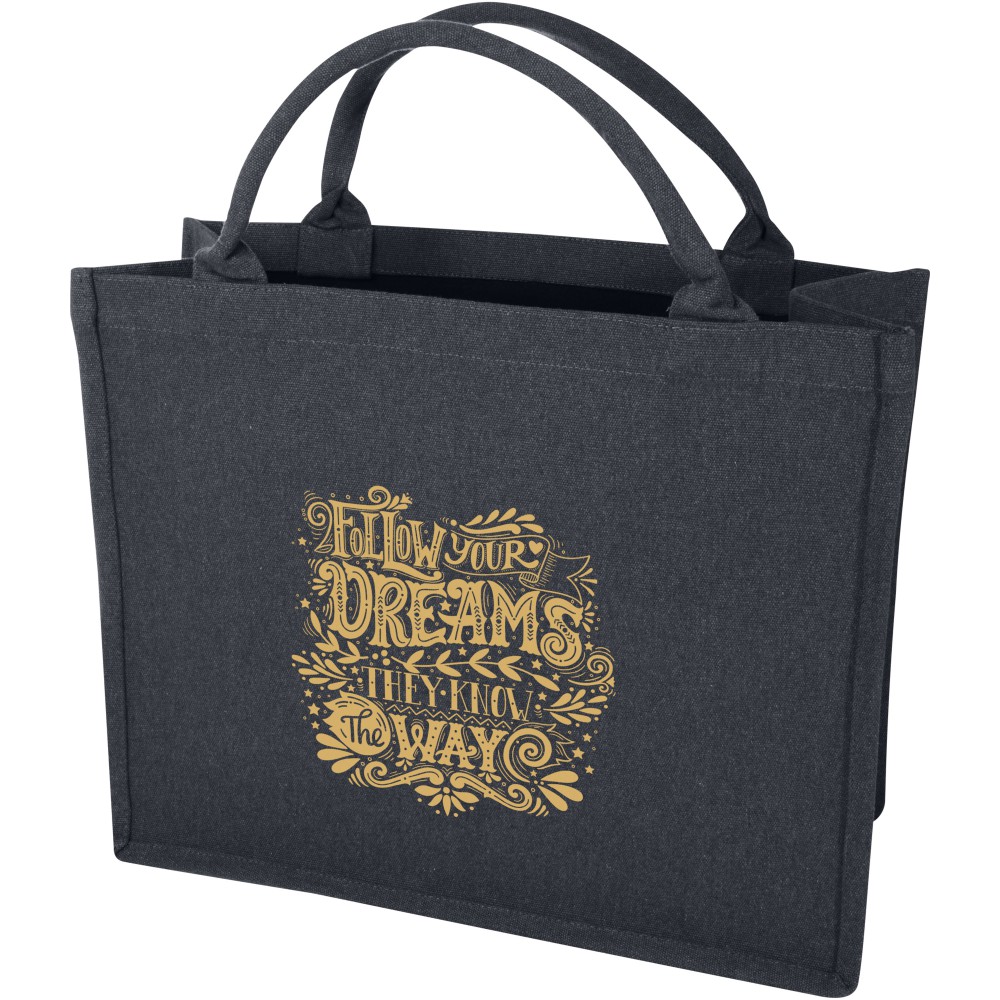 A Page újrahasznosított bevásárlótáska tökéletesen alkalmas a mindennapi tárgyak tárolására, utazásokhoz és bevásárlásokhoz. Rövid, de erős fülekkel ez a táska hosszú ideig kényelmesen hordozható. A táska Cyclo újrahasznosított szálakat tartalmaz, ahol előválogatott hulladékot használnak, amely meghatározza a fonal színét. Minden táskához egy Aware nyomjelző is tartozik. Ez az innovatív funkció lehetővé teszi a felhasználók számára, hogy egy QR-kód segítségével nyomon követhessék a termék eredetét és útját, növelve az ellátási lánc átláthatóságát és elősegítve a termék és a gyártási folyamat közötti szorosabb kapcsolatot. Méret: 42 x 18 x 35 cm.