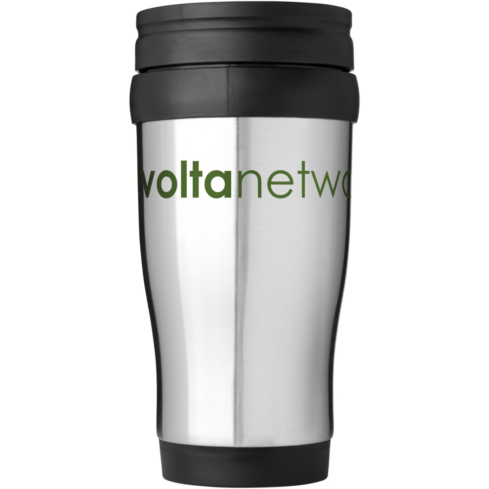 A Sanibel tökéletes bögre italok fogyasztásához útközben. A bögre dupla, szigetelt falú, így sokáig melegen tartja az italokat. A csavaros, elcsúsztatható fedél megkönnyíti az ital fogyasztását. Az ergonomikus hüvelykujjtámaszú fogantyú jó fogást biztosít. A Sanibel bögre rozsdamentes acélból és fekete műanyagból készült, így nagyon erős, korrózióálló és könnyen tisztítható. Űrtartalom: 400 ml.
