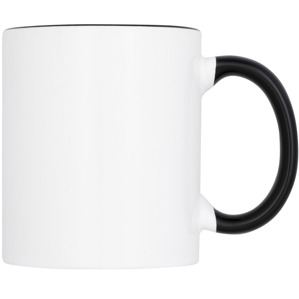 Klasszikus stílusú szublimálható kerámia bögre. Illeszkedő színű belső felülettel és füllel rendelkezik. Nem szivárgásmentes. Szénsavas italokkal is használható. Mosogatógépben mosható és mikrohullámú sütőben történő melegítésre alkalmas. Űrtartalom: 330 ml. Csomagolása fehér kartondoboz.