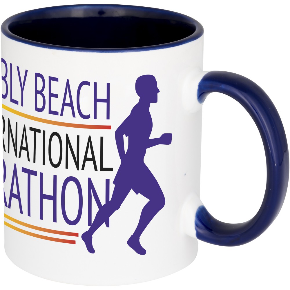 Klasszikus stílusú szublimálható kerámia bögre. Illeszkedő színű belső felülettel és füllel rendelkezik. Nem szivárgásmentes. Szénsavas italokkal is használható. Mosogatógépben mosható és mikrohullámú sütőben történő melegítésre alkalmas. Űrtartalom: 330 ml. Csomagolása fehér kartondoboz.