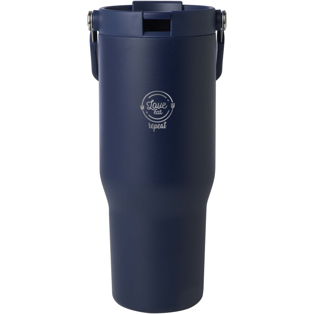 A Bronx 900 ml-es termoszbögre RCS tanúsítvánnyal rendelkező rozsdamentes acélból, dupla falú vákuumszigeteléssel és réz bevonattal készült. A tető kétfunkciós kialakítással rendelkezik: összecsukható ivószárral a kényelmes kortyoláshoz, valamint felpattintható nyílással és lehajtható fogantyúval az egyszerű hordozhatóság érdekében. A legtöbb autós pohártartóba illeszkedik. Újrahasznosított kartondobozban szállítjuk.