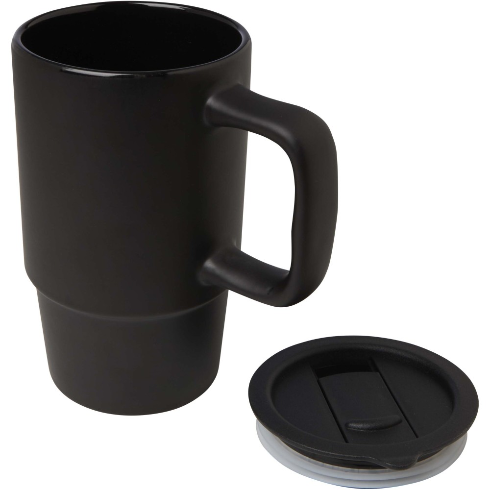 Kerámia bögre nagy, túlméretezett füllel a könnyű fogás érdekében, valamint cseppmentes műanyag tetővel az útközbeni kényelemhez. Külső felülete stílusos, matt kivitelű, a bögre pedig minden nyomtatási eljárás esetén mosogatógépben mosható. Újrahasznosított kartondobozos díszcsomagolásban kerül átadásra. Űrtartalom: 450 ml.