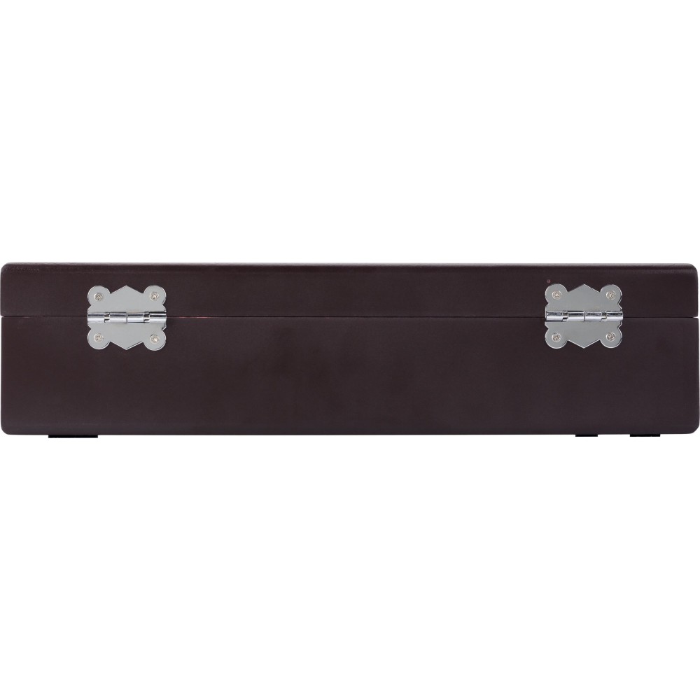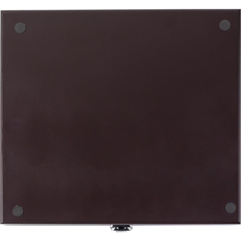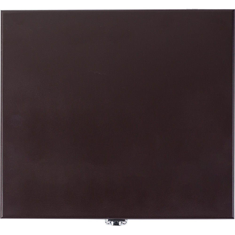 Boroskészlet kilenc eszközzel: két üvegdugó, cseppfogó, hőmérő, fóliavágó, tölcsér és dugóhúzó fa dobozban. Fa és BPA-mentes műanyag.