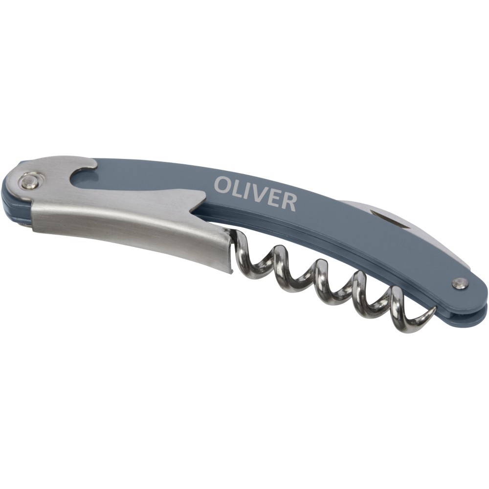 Rozsdamentes acél pincérbicska, fóliavágó, üvegnyitó és dugóhúzó.