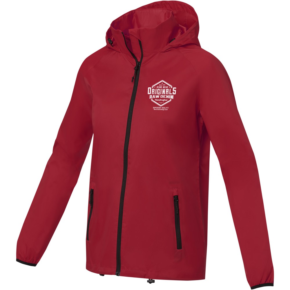 Könnyű női dzseki. Egyedi belső emblémázási lehetőségek. Letéphető, kivágható címke a címke nélküli kényelemért. 500 mm vízálló. Raglan ujjak. Behajtható kapucni. Fordított cipzár. Elülső zsebek cipzárral. Belső zseb. Állítható húzózsinór megállítóval az alsó szegélyben és a kapucniban. 280T ripstop 100% nylonból, 72 g/m2, bélés, 210T taft 100% poliészterből, 60 g/m2.
