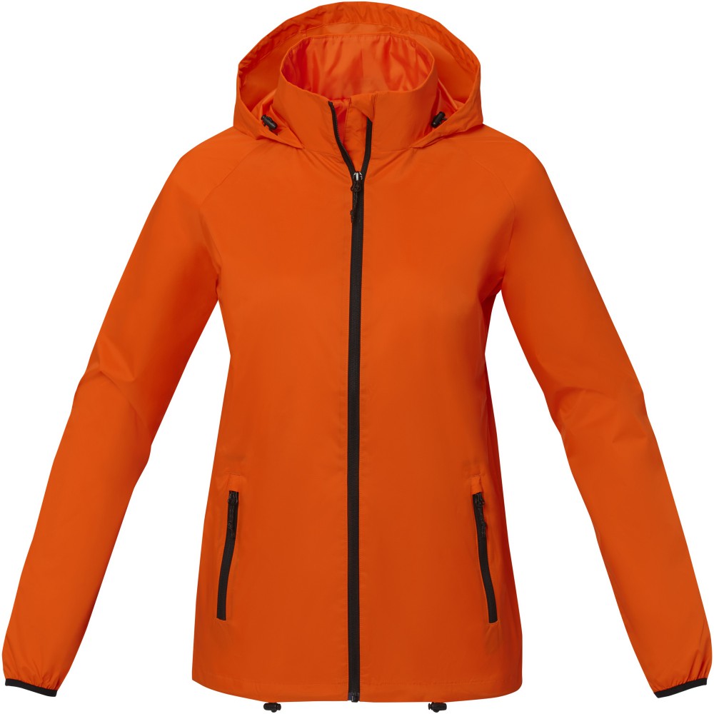 Könnyű női dzseki. Egyedi belső emblémázási lehetőségek. Letéphető, kivágható címke a címke nélküli kényelemért. 500 mm vízálló. Raglan ujjak. Behajtható kapucni. Fordított cipzár. Elülső zsebek cipzárral. Belső zseb. Állítható húzózsinór megállítóval az alsó szegélyben és a kapucniban. 280T ripstop 100% nylonból, 72 g/m2, bélés, 210T taft 100% poliészterből, 60 g/m2.