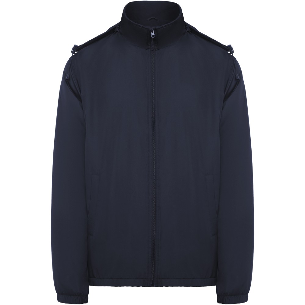Könnyű vízálló dzseki. Magas gallér és behajtható kapucni állítóval. Mikropolár bélés. Elülső cipzár és állvédő. Gumis kézelők. Két cipzáras oldalzseb. Belső bal oldali mellzseb. Vízálló. Szélálló. 100% poliészter, 85 g/m2. Bélés: 100% poliészter, 180 g/m2, bélés, mikropolár, 180 g/m2. Töltet: 100% poliészter, 65 g/m2.