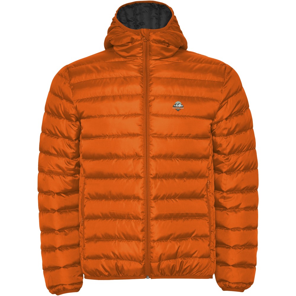 Pehely tapintású férfi steppelt dzseki kapucnival, tasakkal. Fordított cipzárakkal, hozzá illő állvédővel. Két cipzáras elülső zseb. Gumis kézelő, a alj- és a kapucniszegély. Kontrasztos belső bélés. Könnyű és összehajtható ruhadarab. Vízálló. Szélálló modell. 100% poliészter, 290 g/m2. Bélés: 100% poliészter. Töltet: 100% poliészter.