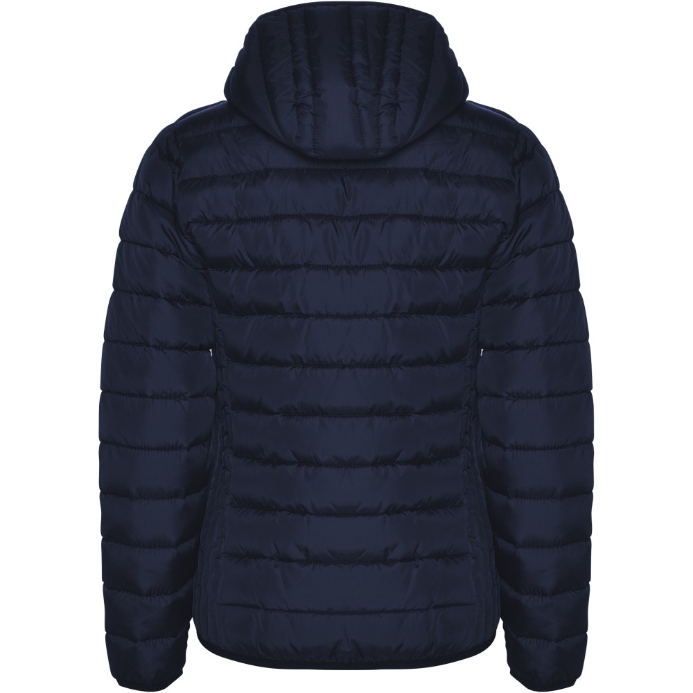 Pehely tapintású, karcsúsított, női, steppelt dzseki kapucnival, tasakkal. Fordított cipzárakkal, hozzá illő állvédővel. Két cipzáras elülső zseb. Gumis kézelő, a alj- és a kapucniszegély. Kontrasztos belső bélés. Könnyű és összehajtható ruhadarab. Vízálló. Szélálló modell. 100% poliészter, 290 g/m2. Bélés: 100% poliészter. Töltet: 100% poliészter.