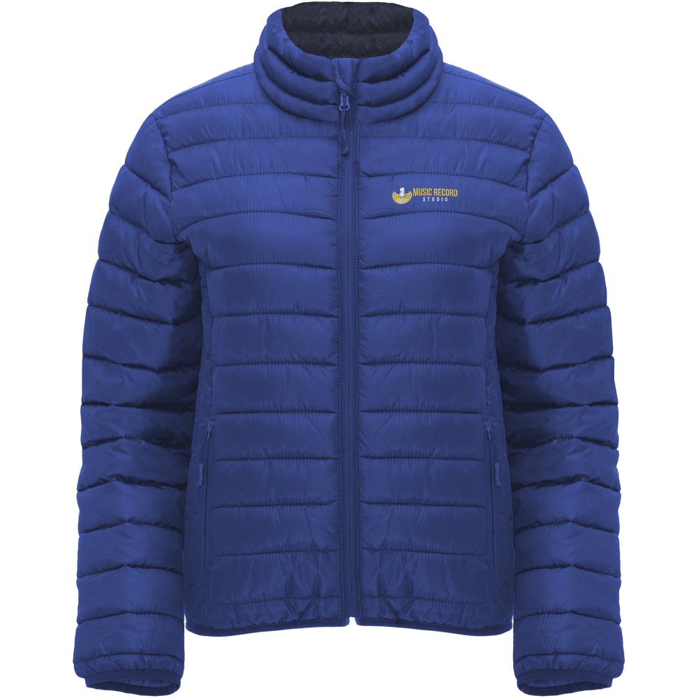 Női, karcsúsított, steppelt dzseki tollszerű tapintású töltettel, tasakkal. Fordított cipzárak, színben illeszkedő állvédővel és cipzárral. Két cipzáras elülső zseb. Gumis szegély a galléron, a kézelőn és az aljon. Kontrasztos színű bélés. Könnyű és összehajtható ruhadarab. Vízálló. Szélálló. 100% poliészter, 290 g/m2. Bélés és töltet: 100% poliészter.