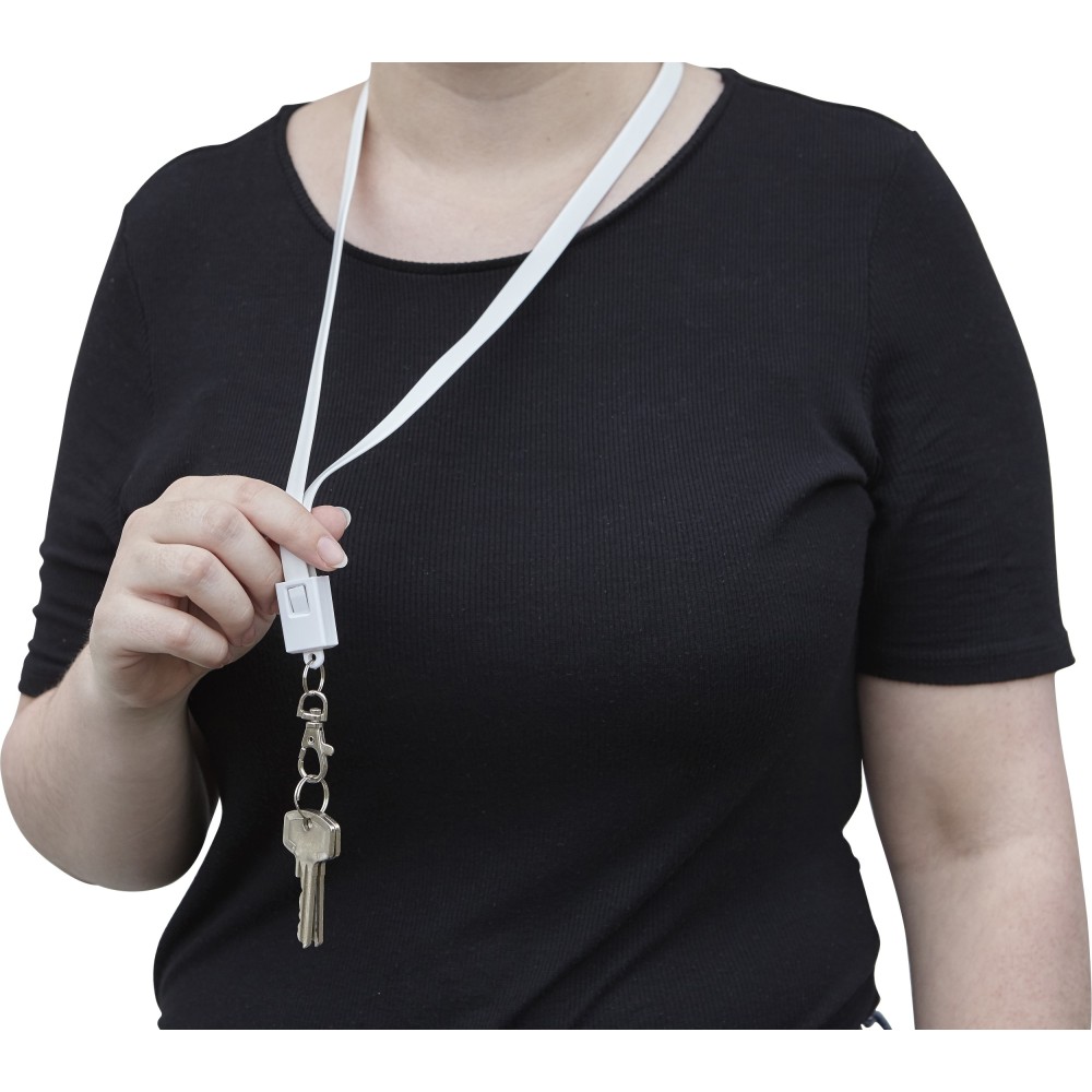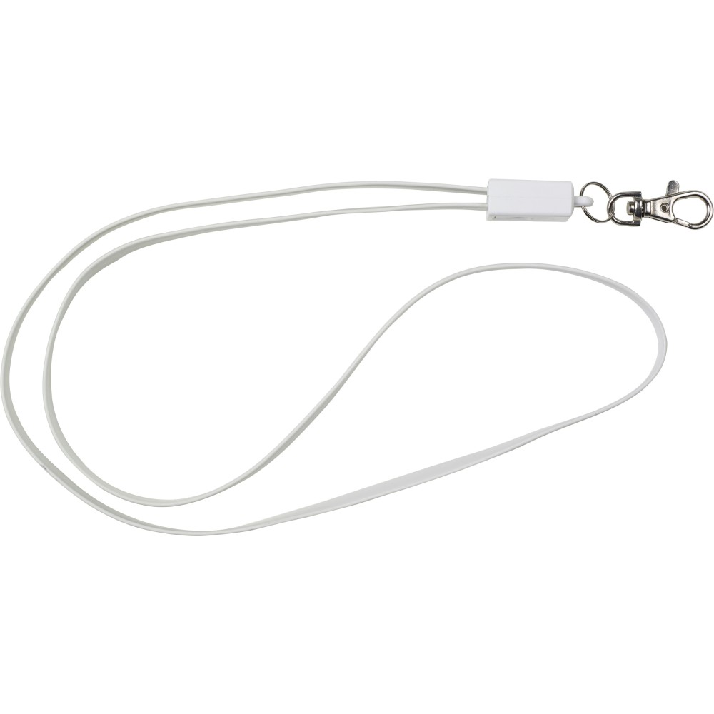 USB, micro USB és lightning töltőkábel és nyakpánt egyben. Hossza kb. 90 cm. Cseppkarabinerrel érkezik.