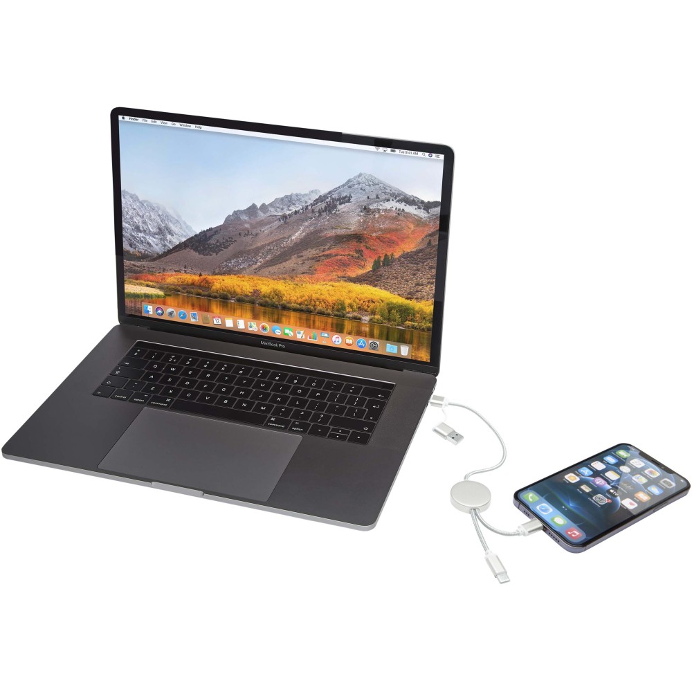 Az Alasia 5 az 1-ben adat- és 27W-os gyorstöltő kábel tartós és elegáns újrahasznosított alumíniumból és műanyagból készült. A kábel USB-A és Type-C bemeneti csatlakozókkal, valamint Type-C és Lightning/Micro USB kombinált kimeneti csatlakozóval rendelkezik. Az USB-A?USB-C kapcsolat maximális teljesítménye 27W, míg az összes többi kapcsolat maximális teljesítménye 15W. Kompatibilis a CarPlay és az Android Auto rendszerekkel. Akár otthon, az irodában vagy útközben használod, az Alasia kábel teljesítményt és stílust garantál. Kábel hossza: 30 cm.