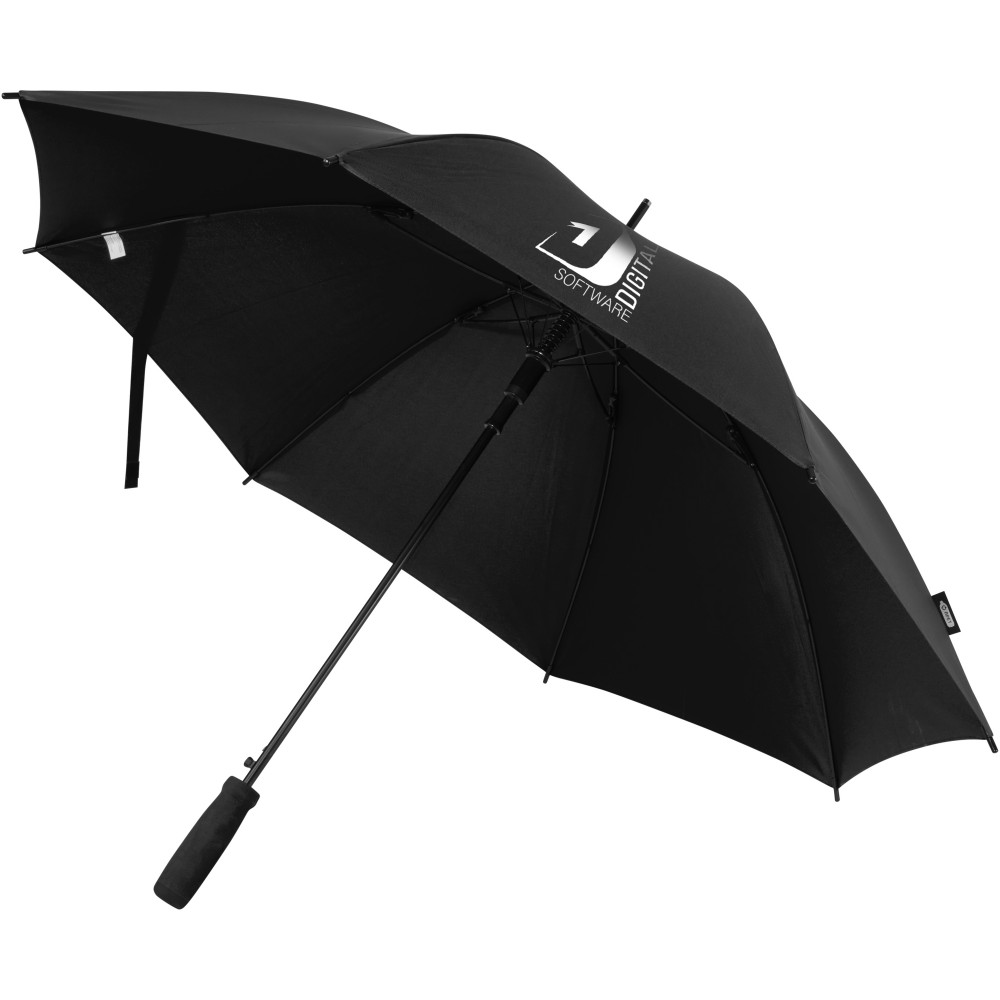 23 méretű, automata esernyő, újrahasznosított PET pongee ernyővel. Stabil fémszárral, üvegszálas vázzal és kényelmes EVA fogantyúval rendelkezik, színben passzoló véggel. Nagy nyomtatási terület minden egyes panelen.