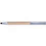 Golyóstoll és érintő kék tollbetéttel, műanyag klipsszel és nyomógombbal. A klipsz nyomógombként funkcionál, és okostelefon-állványként is használható. ABS, bambusz.