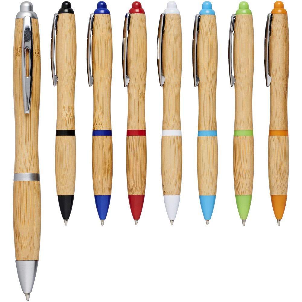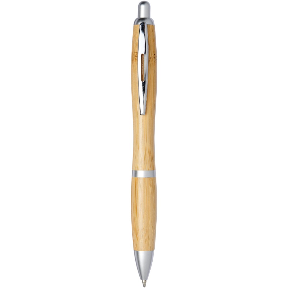 Golyóstoll nyomógombos mechanikával. Bambusz tolltest, króm klipsz, ABS műanyag. A bambusz természetes alapanyag, árnyalata darabonként változó lehet.