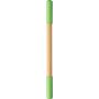 Bambusz végtelenített ceruza és golyóstoll. Az egyik oldalon végtelenített ceruza, a másikon golyóstoll, mindkettő színes karton kupakkal. Kék tollbetéttel.