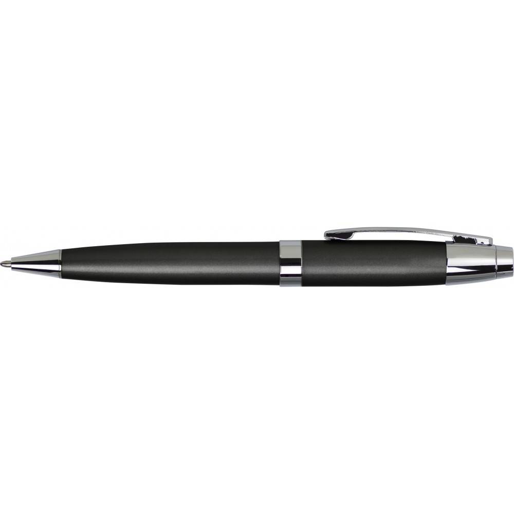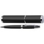 Fém golyóstoll fekete tollbetéttel, hozzáillő tokban.