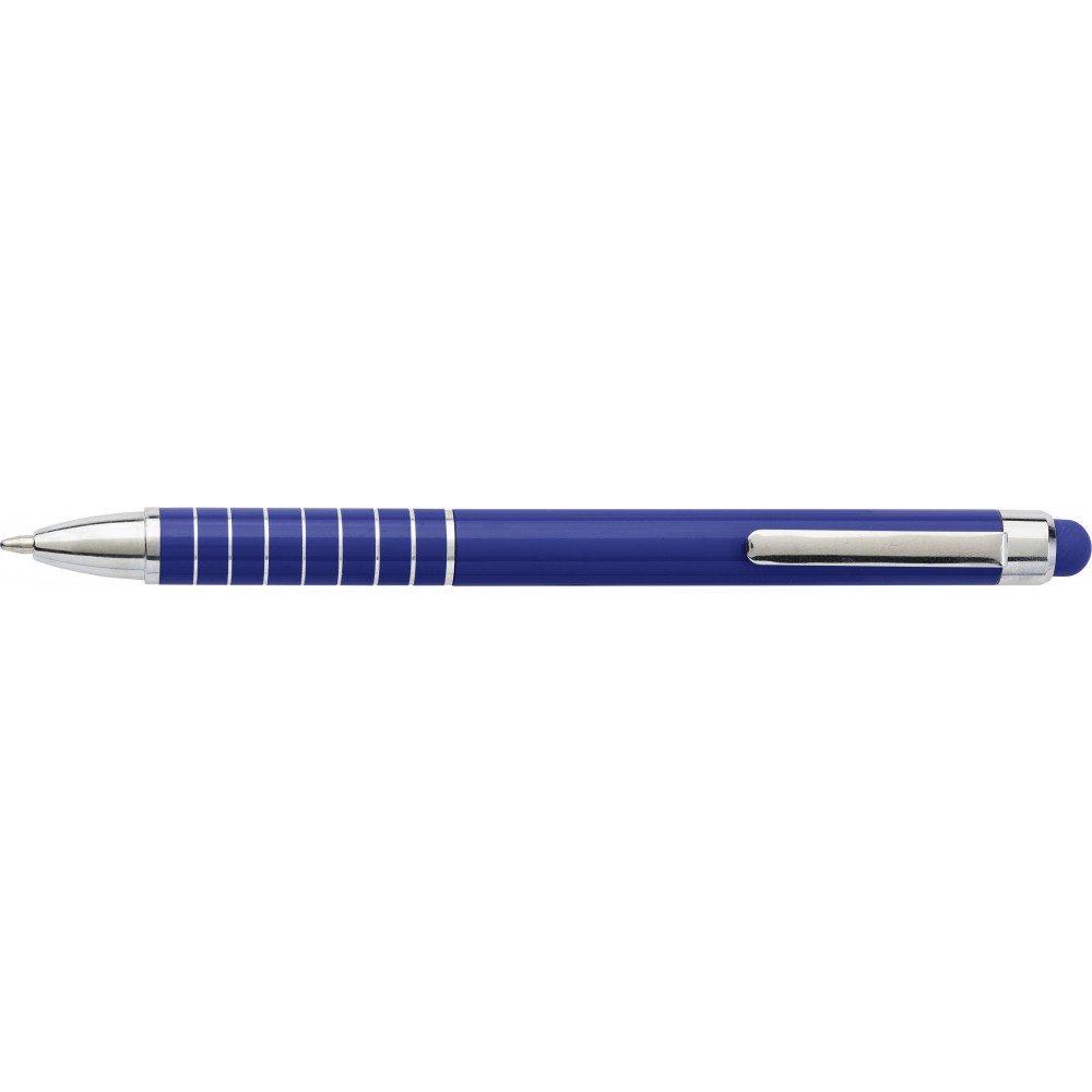Lakkozott felületű alumínium golyóstoll érintővel, kék tollbetéttel.