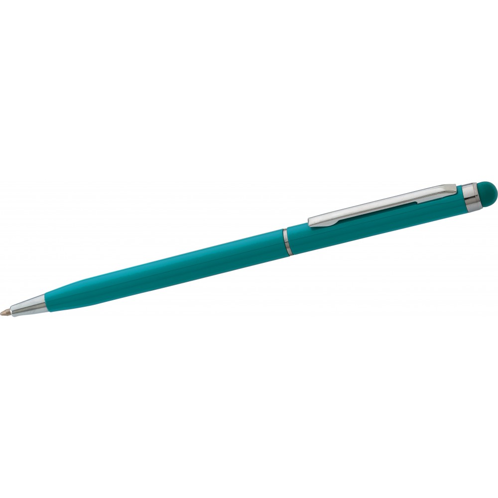 Alumínium golyóstoll érintővel, kék tollbetéttel, türkiz