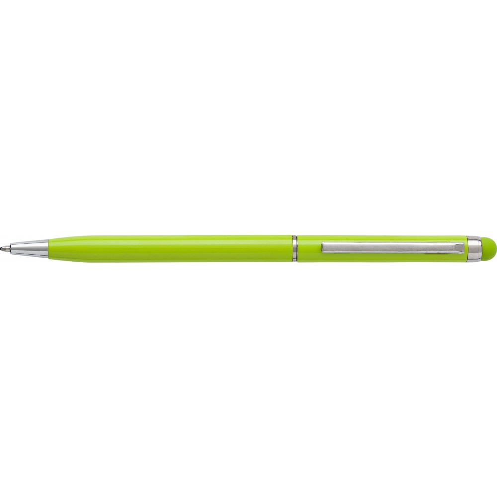 Alumínium golyóstoll érintővel, kék tollbetéttel, világoszöld