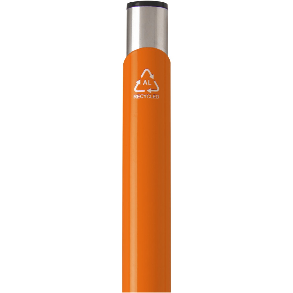 Újrahasznosított alumíniumból készült golyóstoll lakkozott, fényes felülettel és feltűnő króm részletekkel. Az újrahasznosított alumínium kevesebb energiát igényel, mint az alumínium nyersanyagokból történő előállítása, ami fenntarthatóbbá teszi a gyártást. Csökkenti a szemétlerakókba kerülő hulladék mennyiségét és segít a természeti erőforrások megőrzésében, az üvegházhatást okozó kibocsátás csökkentését célozva. Fekete tollbetéttel. Íráskapacitás: 600 méter. Újrahasznosított alumínium, ABS műanyag, vas.