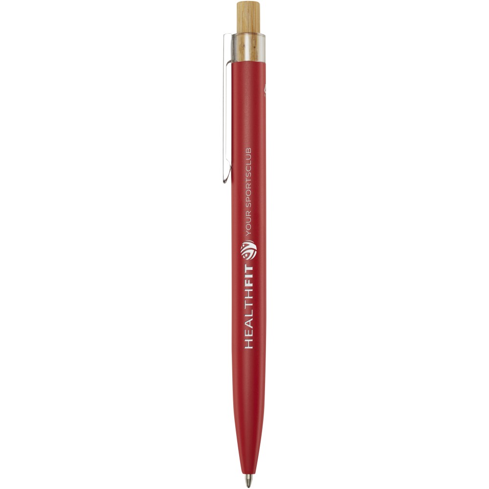 A Nooshin golyóstoll újrahasznosított alumíniumból készül, ami kevesebb energiát igényel, mint az alumínium nyersanyagból történő előállítása. Emellett csökkenti a hulladéklerakókba kerülő hulladék mennyiségét és hozzájárul a természeti erőforrások megőrzéséhez, amelynek célja az üvegházhatású gázok kibocsátásának csökkentése. A nyomógomb bambuszból készült. Tollbetét színe: kék. Íráshossz: 800 méter. Tollhegy mérete: 1,00 mm.