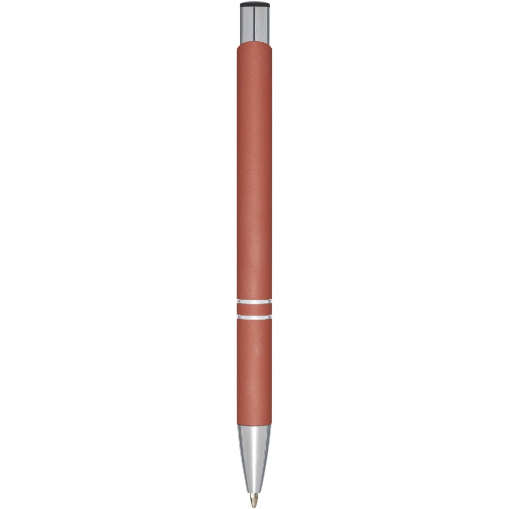 Nyomógombos golyóstoll puha tapintású bevonattal. Lézergravírozáskor megjelenik a toll fényes króm, felület alatti rétege. Fekete tollbetéttel.