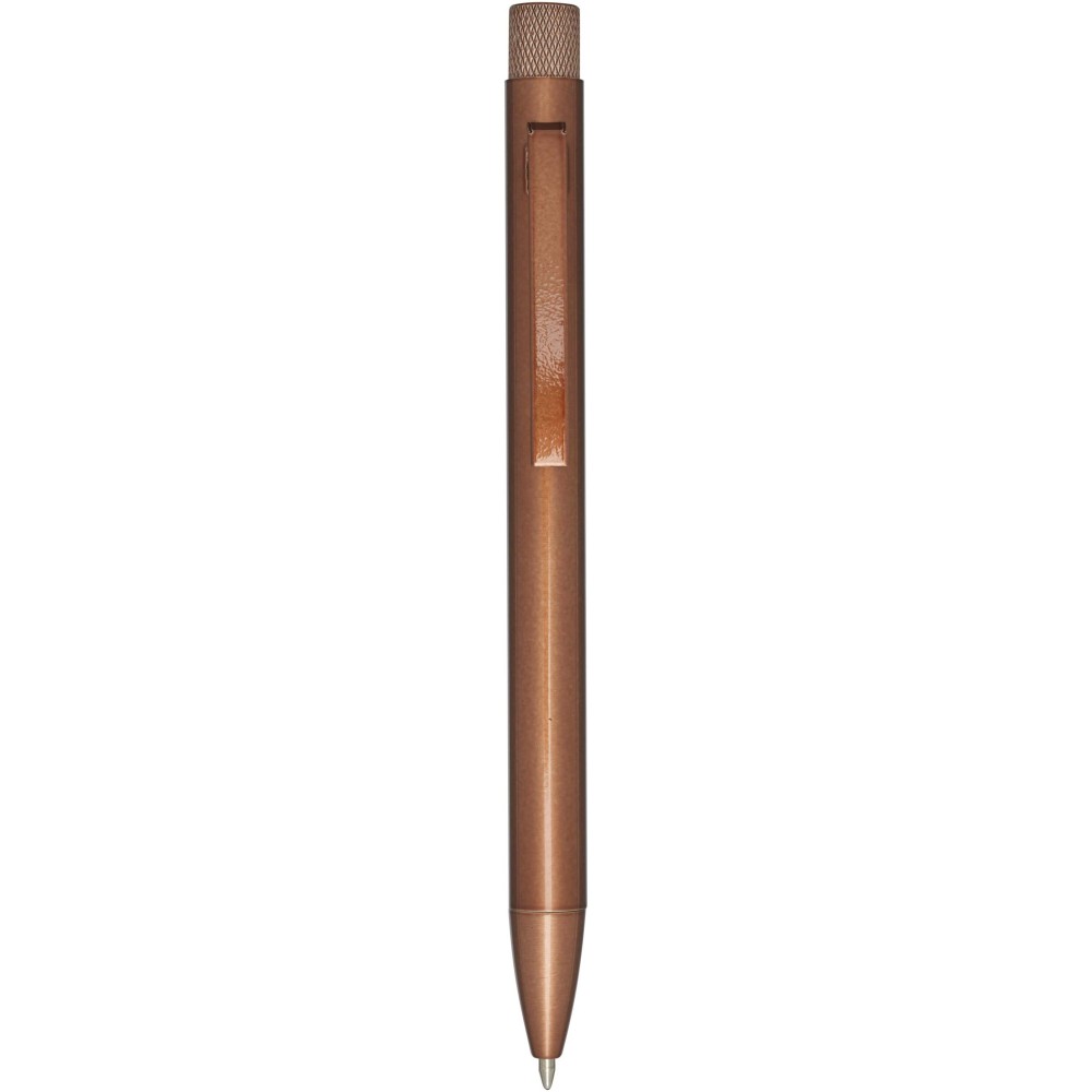 Golyóstoll színes festékszórt bevonattal. A gomb és a hegy sárgarézből, a tollteste újrahasznosított sárgarézből, a klipsz pedig vasból készült. Fekete tollbetéttel. Írási hossz: 1000 méter. Hegyméret: 1,0 mm. Ajándékdobozban szállítjuk.
