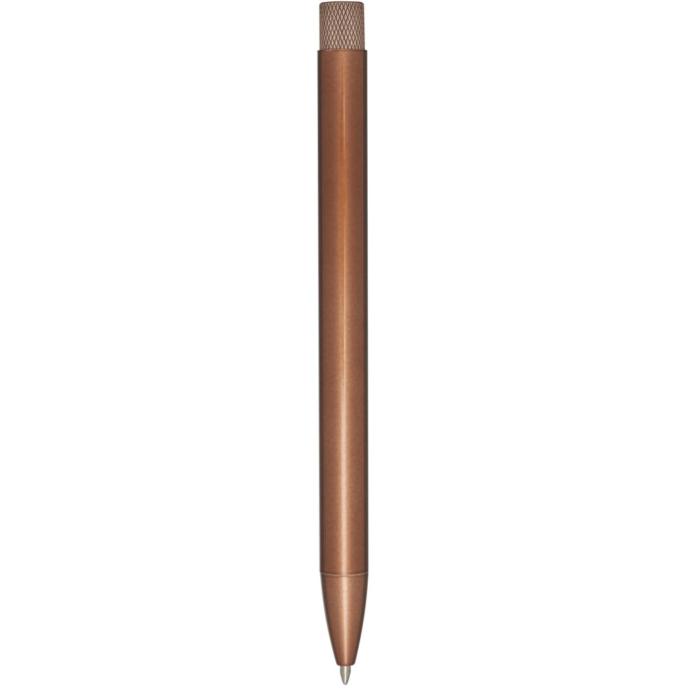 Golyóstoll színes festékszórt bevonattal. A gomb és a hegy sárgarézből, a tollteste újrahasznosított sárgarézből, a klipsz pedig vasból készült. Kék tollbetéttel. Írási hossz: 1000 méter. Hegyméret: 1,0 mm. Ajándékdobozban szállítjuk.