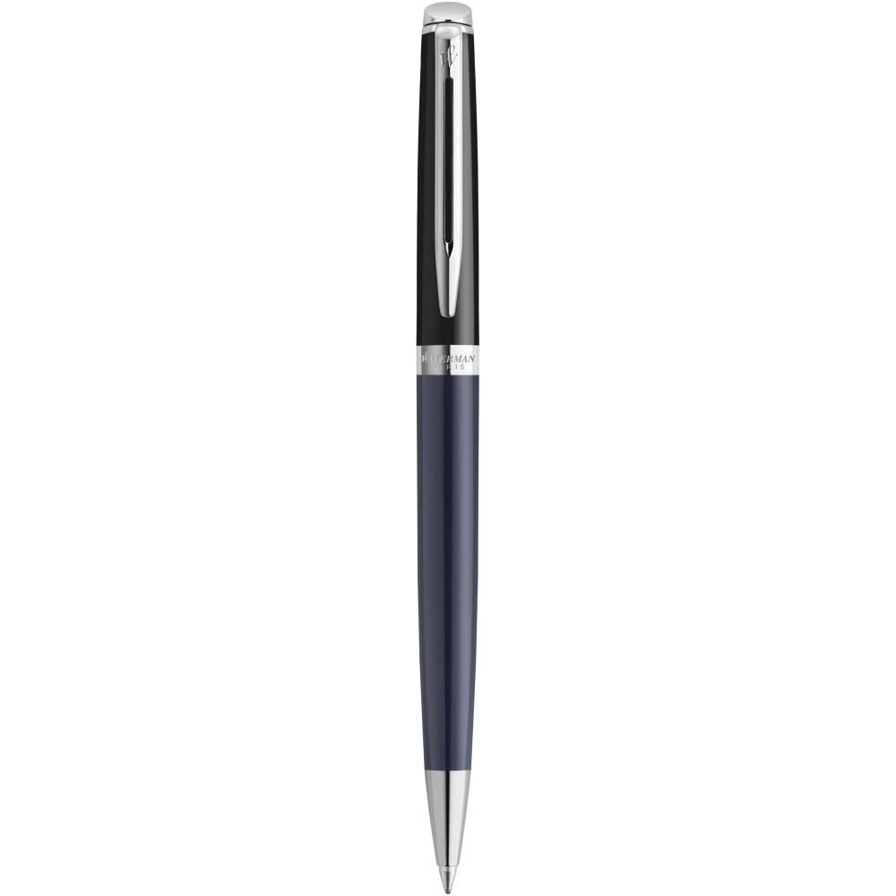A Waterman Hemisphere golyóstoll stílusos és magas minőségű íróeszköz színblokkokból kialakított design-nal, palládium díszítéssel. Modern esztétikáját a palládium díszítés luxus hatása egészíti ki, így alkalmas mindennapi használatra és különleges alkalmakra is. Finom hegyével sima és precíz írásélményt nyújt, míg ergonómikus kialakítása biztosítja a kényelmet hosszabb használat során. Személyes használatra vagy elegáns ajándéknak egyaránt kiemelkedő dizájnjával és teljesítményével. Ajándékdobozban szállítjuk. Kék tollbetéttel. Írási hossz: 800 méter.