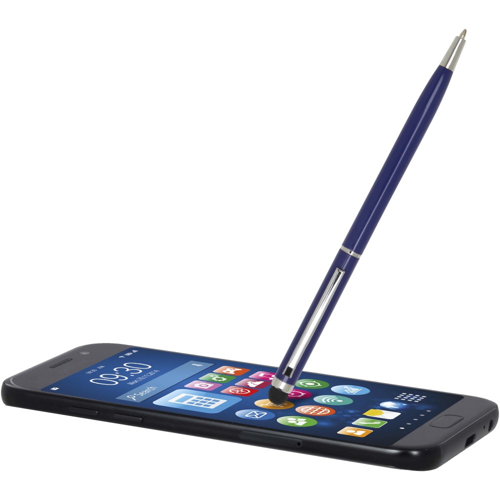 Ez a sokoldalú érintőceruzával ellátott golyóstoll tartós alumíniumból készült. A toll sima írást biztosít, míg a beépített érintőképernyős vég a pontos online navigációhoz ideális. Tinta színe: kék. Íráshossz: 1000 méter. Tollhegy mérete: 1,0 mm.