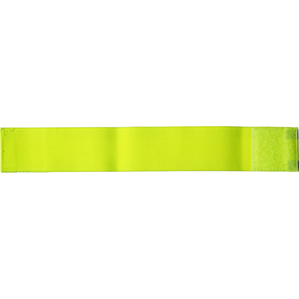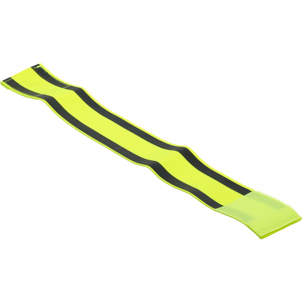 Fényvisszaverő pánt két csíkkal. A fényvisszaverő csíkok 1 cm szélesek. A pánt hossza 32.5 cm, tépőzárral rögzíthető. Promóciós célú felhasználásra gyártott termék.