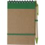 Spirálnotesz tollal, kék tollbetéttel, natúr/zöld