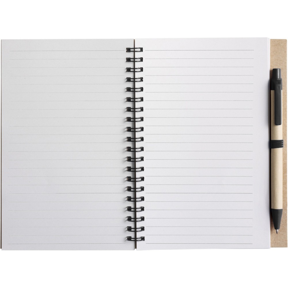 Újrahasznosított spirálfüzet tollal, 60 lapos, fekete/natúr