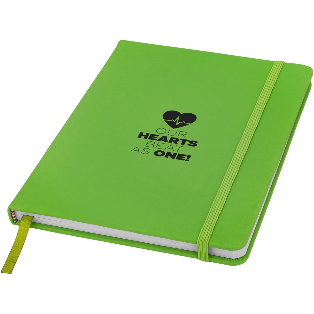Spectrum A/5 jegyzetfüzet színes fedéllel, jelölőszalaggal és gumipánttal, 96 vonalas lappal (60g/m2).