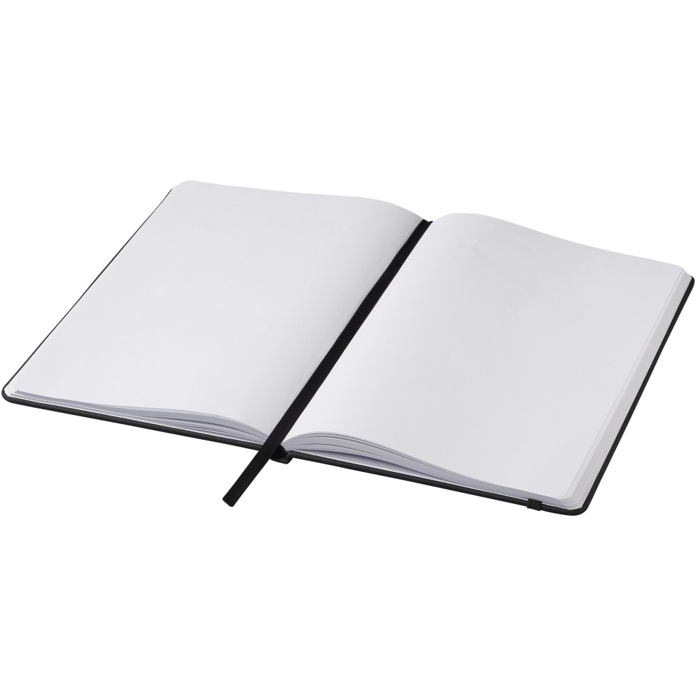 A/5 -ös jegyzetfüzet színben hozzáillő gumipánttal és jelölőszalaggal. 96 lapos.( (60g/m2). Sima lapok.