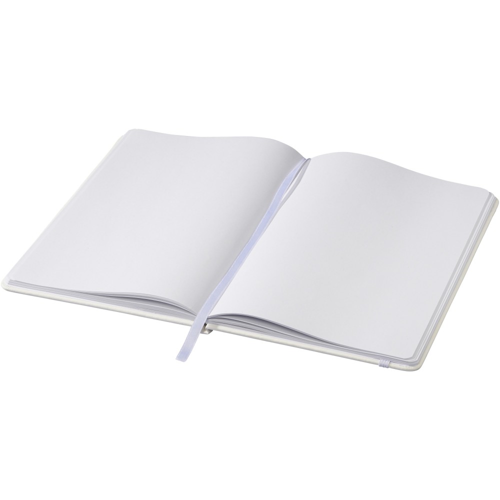 A/5 -ös jegyzetfüzet színben hozzáillő gumipánttal és jelölőszalaggal. 96 lapos.( (60g/m2). Sima lapok.