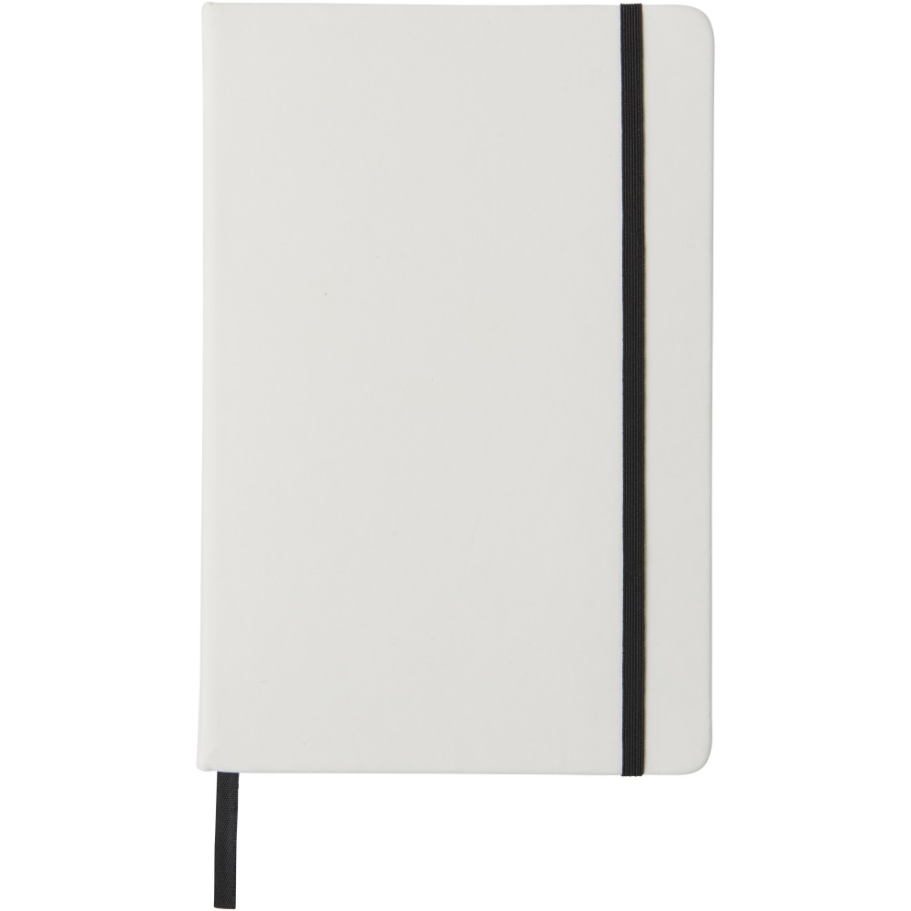 A5-ös RPET füzet, fehér A5 jegyzetfüzet, újrahasznosított PU, világoskék Medium Noir füzet, lila A5-ös füzet, fehér/fekete Bass A5 keményfedelű füzet, fehér