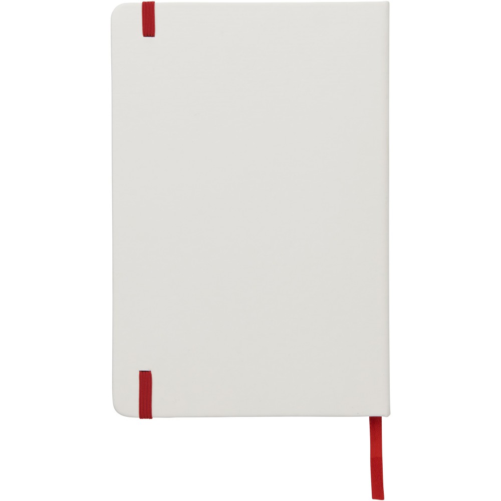 Fehér A5-ös füzet színes, gumis pánttal és könyvjelzővel, 96 db vonalas lappal.