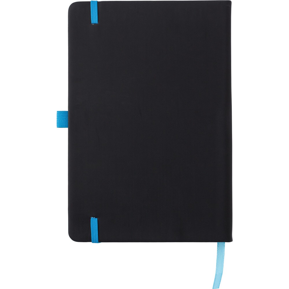 A5 füzet 96 vonalas lappal, könyvjelzővel, gumis zárópánttal. Lézergravírozás után a gravírozott felület színe megegyezik a gumipánt színével. PU anyag.