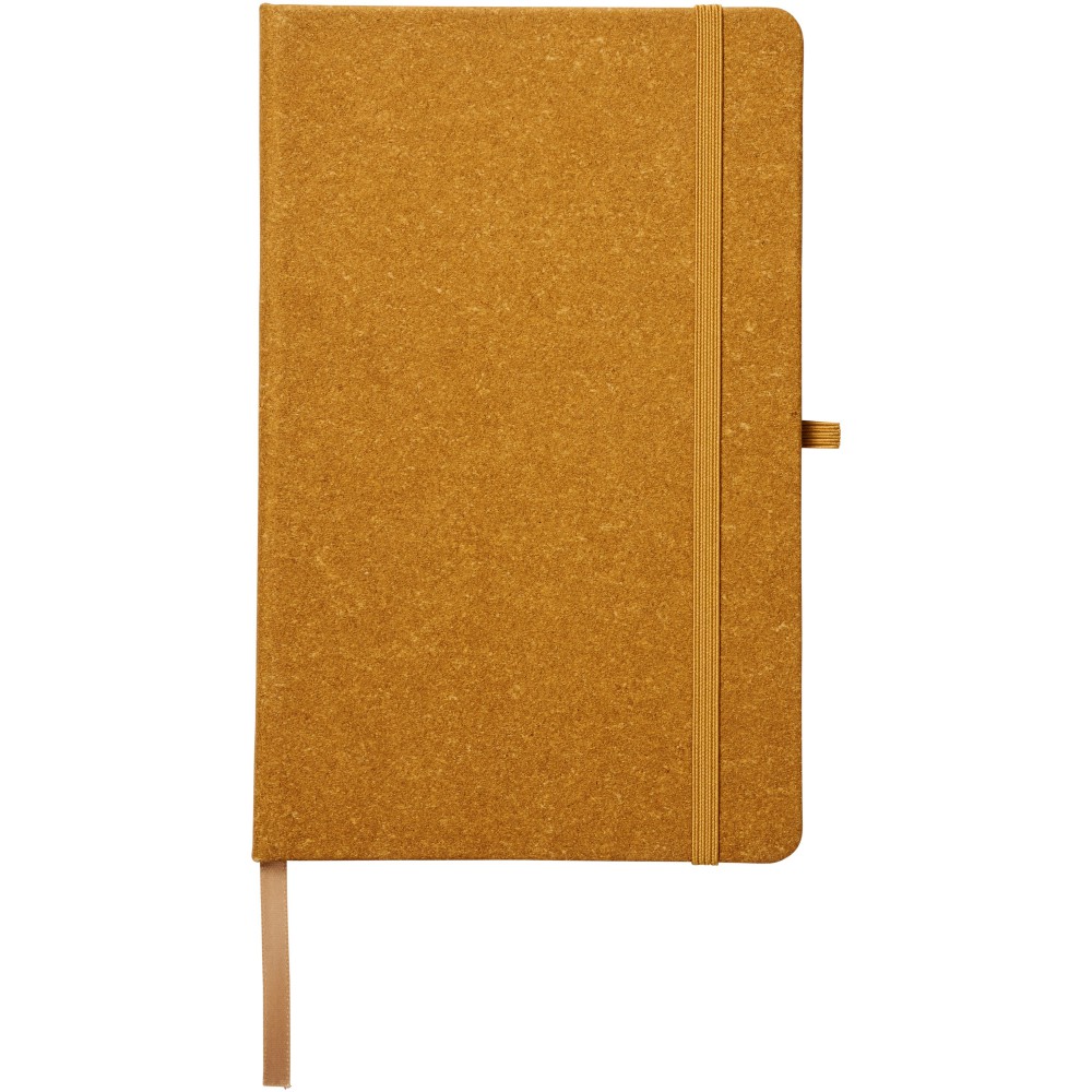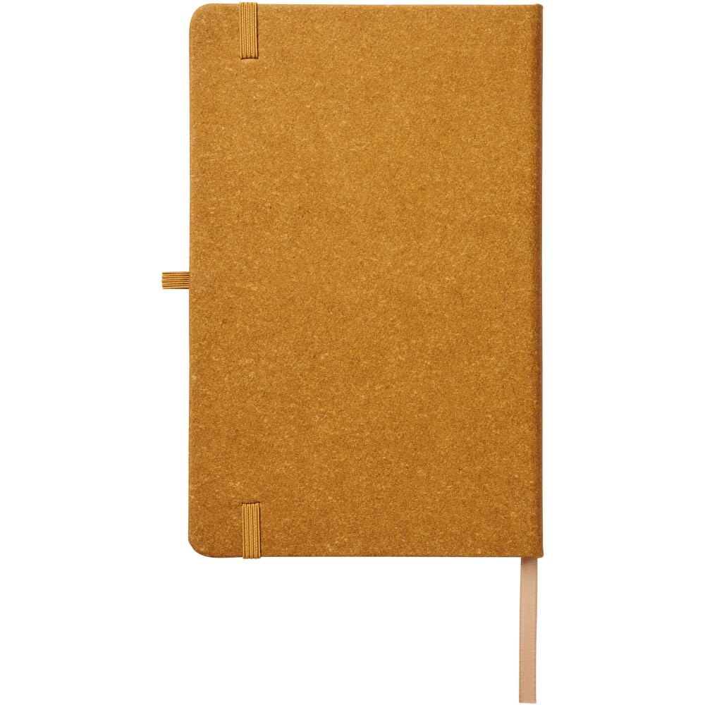 A5 méretű füzet, újrahasznosított bőr borítással. Gumi zárószalaggal, tollhurokkal, könyvjelzővel és 80 (80gsm) vonalas lappal. A lapok nem újrahasznosítottak.