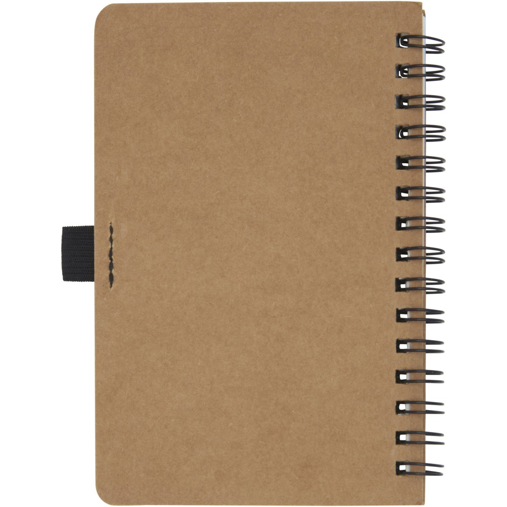 A6 méretű spirálfüzet újrahasznosított karton fedéllel, tollhurokkal. 70 db 60 g / m2 vonalas kőpapír lapok. A kőpapír 100% famentes és a gyártási eljárás során kevesebb energiát használnak fel, mint az újrahasznosított vagy új papír előállítása esetében. A papír vízálló és szakadásálló, természetes fehér színű (nem fehérített). Újrahasznosított karton, kőpapír.