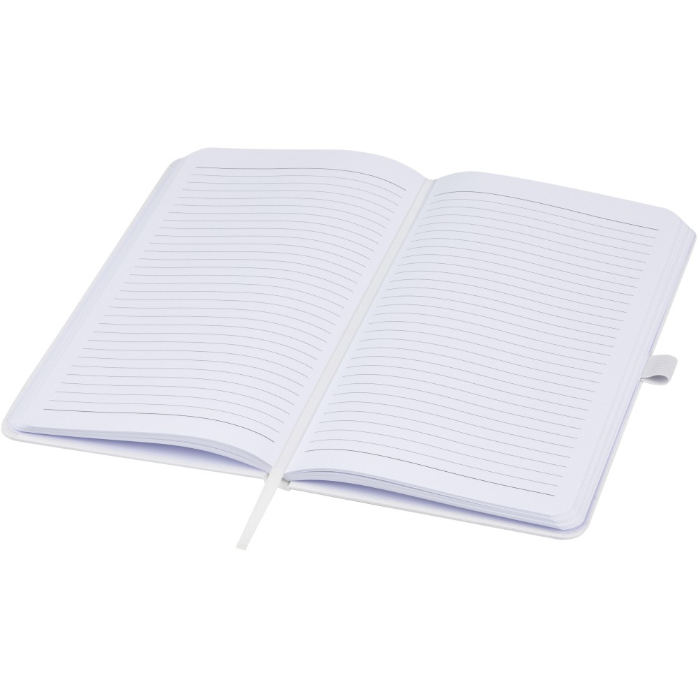 Könnyű, keményfedeles jegyzetfüzet a mindennapi jegyzeteléshez újrahasznosított alapanyagokból készült borítóval. A barna borító kávémaradványt, a zöld borító olajbogyó-maradványt, a fehér pedig kukoricamaradékot tartalmaz. 80 lap (70 g/m2) újrahasznosított fehér vonalas lapot tartalmaz.