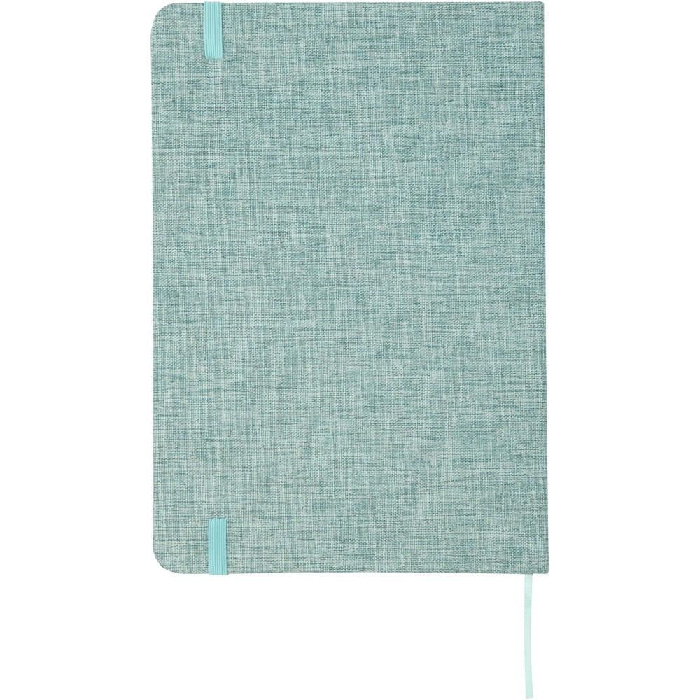 Kemény fedeles A5 jegyzetfüzet újrahasznosított pamutból, 80 soros 70 g/m2 papírral. A jegyzetfüzet gumis záródással, szalaggal és lekerekített sarkokkal rendelkezik.