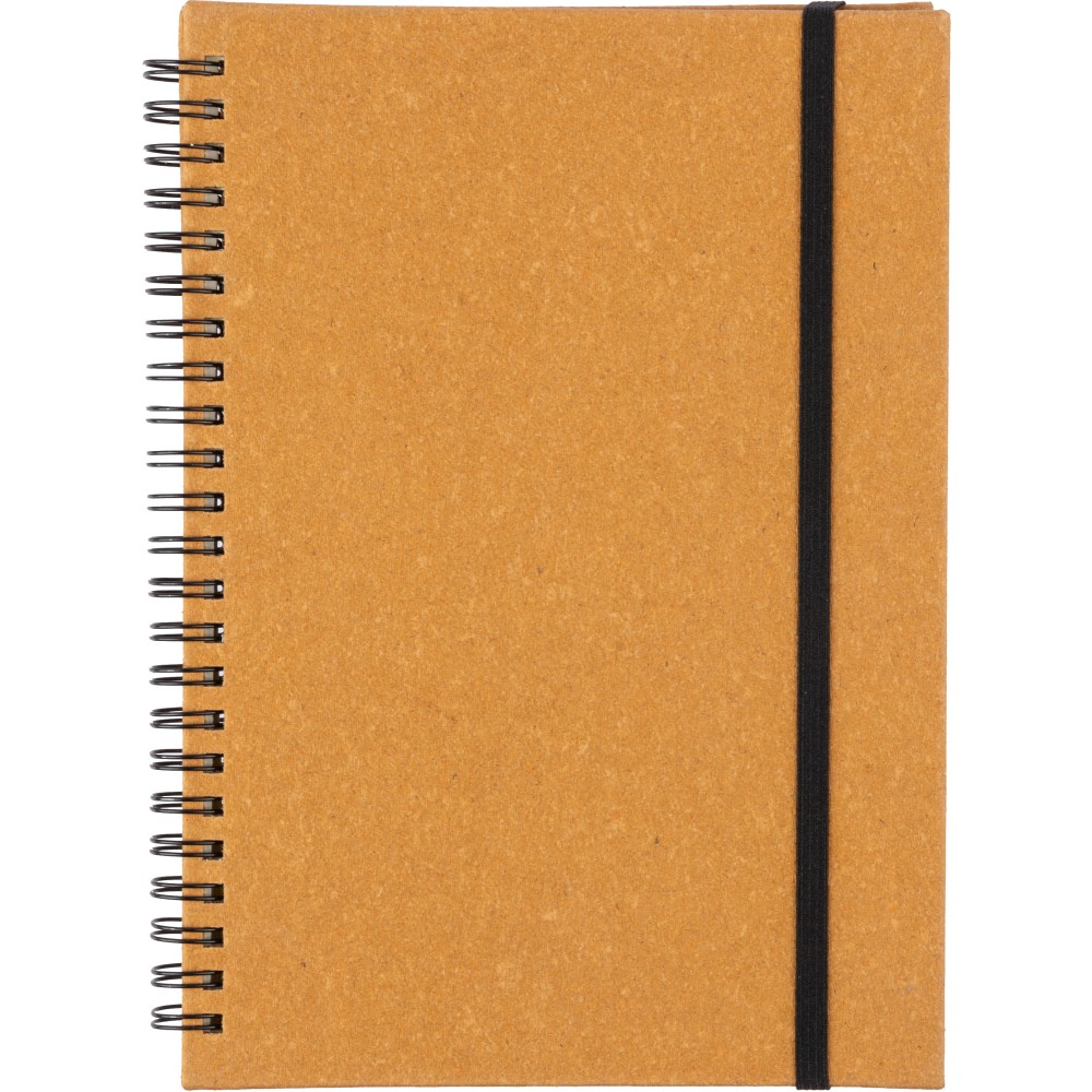 Újrahasznosított bőrből készült A5-ös jegyzetfüzet, 80 lappal. Újrahasznosított bőr alapanyagot jelző dombornyomás a borító hátoldalán.