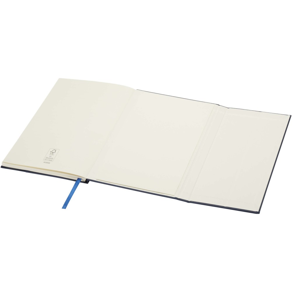 Az Alejandra A5 keményfedeles jegyzetfüzet újrahasznosított PU műanyagból és RPET-ből készült. 80 vonalas, 70 g/m2 krémszínű lapot tartalmaz, valamint szalagkönyvjelzővel és harmonika zsebbel van ellátva.