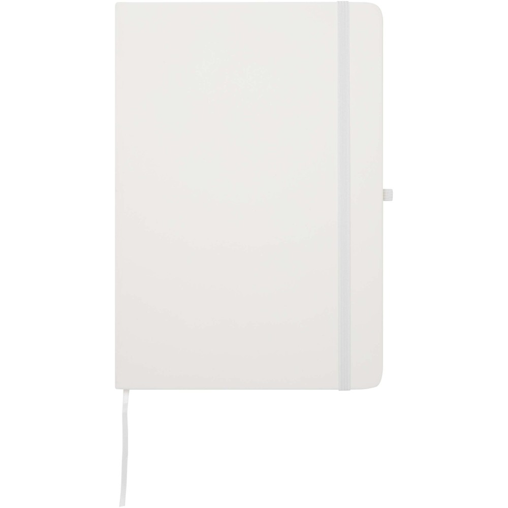 A Spectrum Plus A5 keményfedeles jegyzetfüzet lekerekített sarkokkal nemcsak az irodai mindennapok elengedhetetlen kelléke, hanem remek lehetőség márkád népszerűsítésére is. A jegyzetfüzet puha tapintású borítóval rendelkezik és 80 vonalas, krémszínű, 70 g/m2-es lapból áll, amely tökéletes gyors ötletek vagy hosszabb jegyzetek rögzítésére. A jegyzetfüzet tolltartó hurokkal, gumiszalagos záródással, könyvjelzővel és harmonikazsebbel van ellátva.