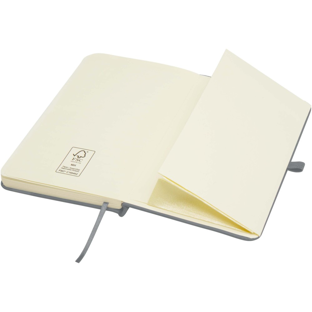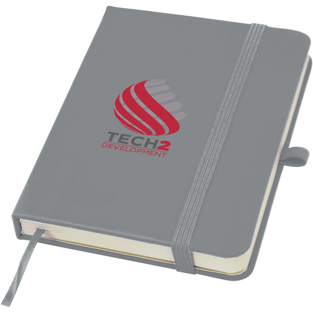 A Spectrum Plus A6 keményfedeles jegyzetfüzet lekerekített sarkokkal nemcsak az irodai mindennapok elengedhetetlen kelléke, hanem remek lehetőség márkád népszerűsítésére is. A jegyzetfüzet puha tapintású borítóval rendelkezik és 80 vonalas, krémszínű, 70 g/m2-es lapból áll, amely tökéletes gyors ötletek vagy hosszabb jegyzetek rögzítésére. A jegyzetfüzet tolltartó hurokkal, gumiszalagos záródással, könyvjelzővel és harmonikazsebbel van ellátva.